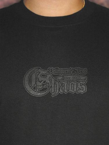 CHAOS BRAND独自のオールブラック加工(あえてベースシャツのブラックと同色のブラックで印刷)。